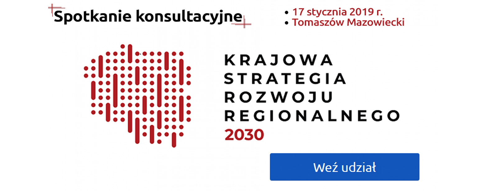 Zapraszamy na spotkanie konsultacyjne projektu Krajowej Strategii Rozwoju Regionalnego 2030 (KSRR) organizowane przez Ministerstwo Inwestycji i Rozwoju przy współpracy z Urzędem Marszałkowskim Województwa Łódzkiego i Starostwem Powiatowym w Tomaszowie Mazowieckim.