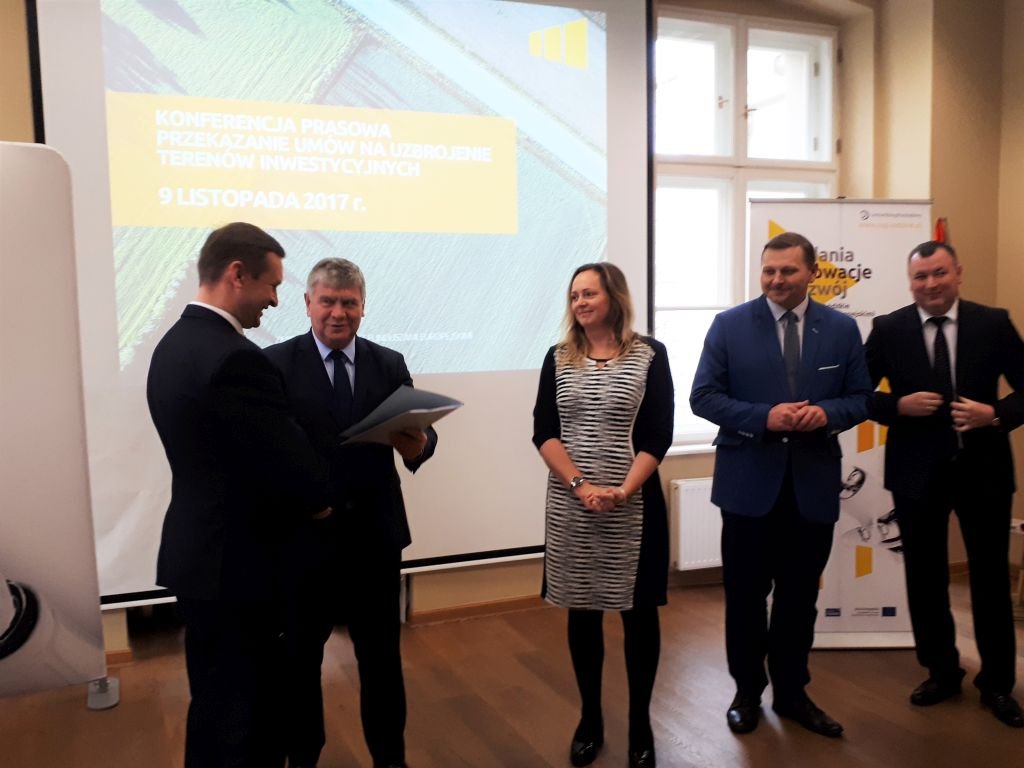 9 listopada br. w siedzibie Centrum Obsługi Przedsiębiorcy odbyło się uroczyste przekazanie przez Marszałka WŁ Witolda Stępnia i Członka Zarządu Joanny Skrzydlewskiej 3 podpisanych umów w konkursie na uzbrojenie terenów inwestycyjnych w ramach II osi priorytetowej RPO WŁ - Poddziałanie 2.1.1. Tereny Inwestycyjne.