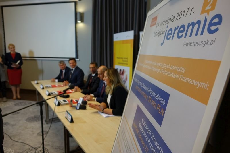 Podczas Konwentu Marszałków RP w Uniejowie nastąpiło uroczyste zawarcie dwóch pierwszych umów między Bankiem Gospodarstwa Krajowego a pośrednikami finansowymi na wdrażanie instrumentów finansowych w ramach RPO WŁ 2014-2020 – JEREMIE 2.